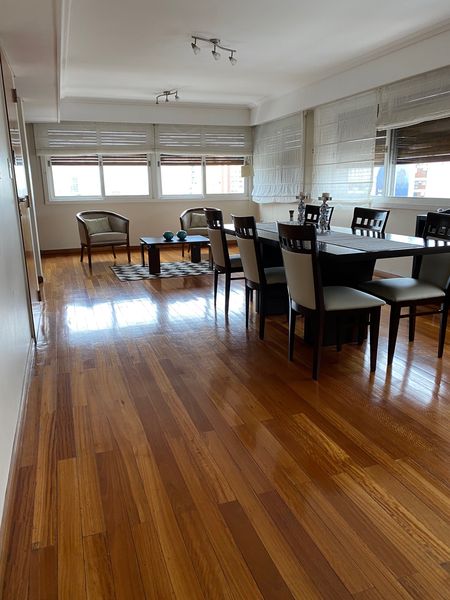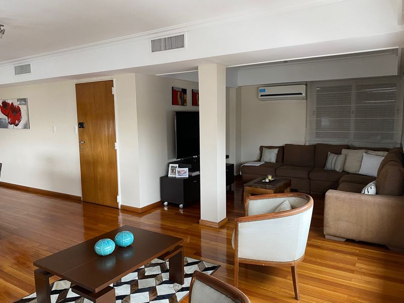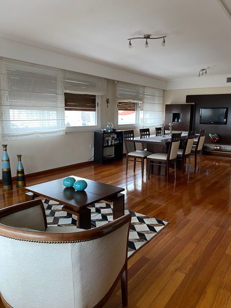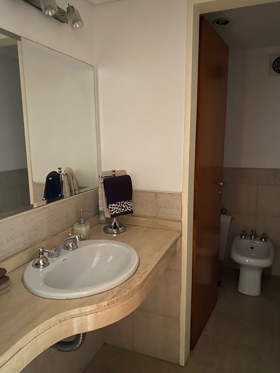 Gran living-comedor en L, cocina-comedor diario, toilette, escritorio o dependencia de servicio con baño completo. Amplio lavadero con balcon, parrilla a gas y espacio de guardado. Dos dormitorios con baño completo y un dormitorio principal en suite. Todos los dormitorios con placard. La unidad se vende amoblado, ademas cuenta con cochera y baulera. Apto credito